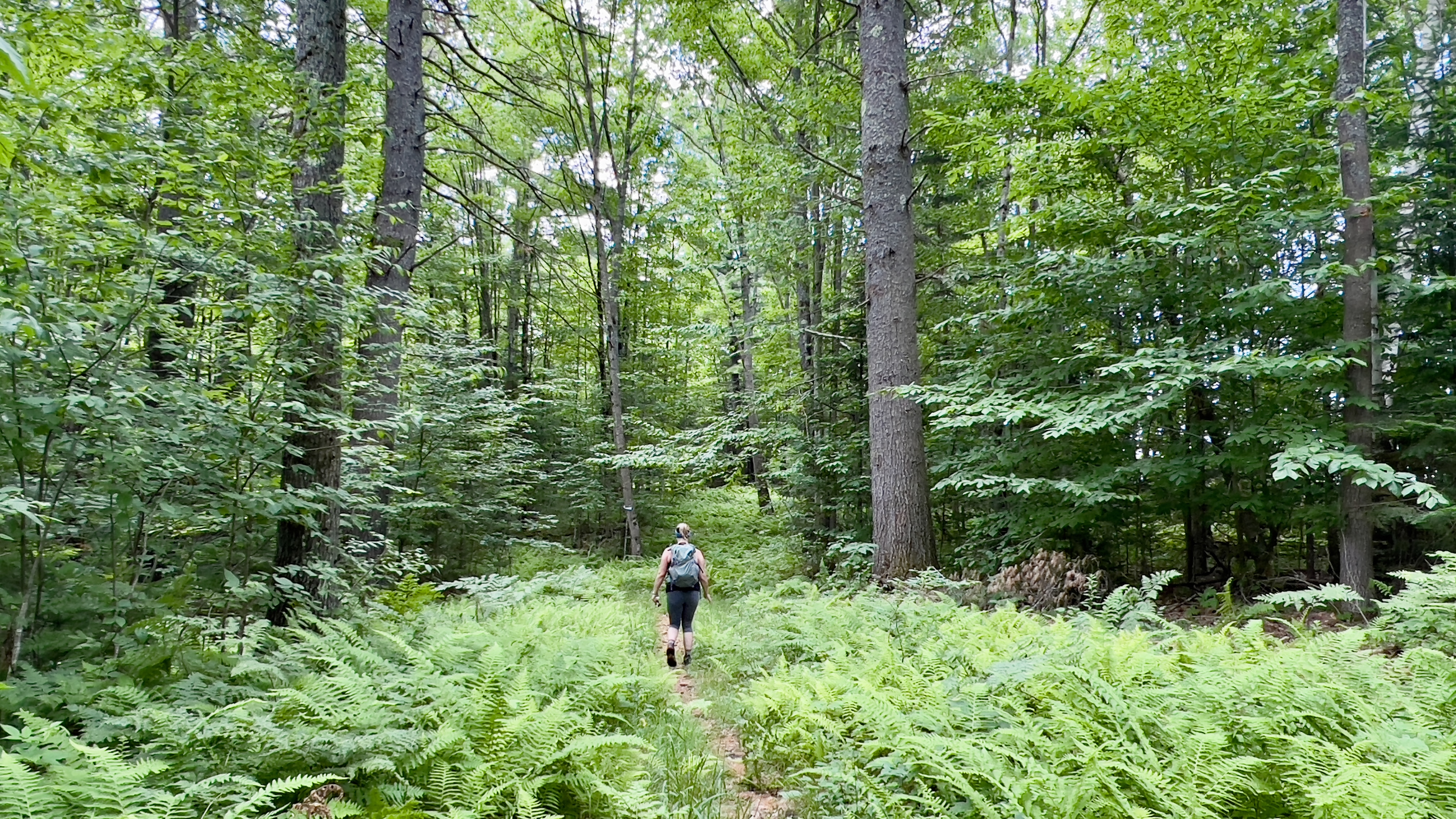 Happy 4th of July! It was another super hot and steamy day. Way too many of these lately. I decided to stay low and hopefully low key. Laura and I headed to Sunapee for me to complete my final section on the Sunapee Ragged Kearsarge Greenway. We dropped my car at the Sunapee Town Office and headed back to the Mt Sunapee Resort to begin. I needed the Province Trail portion of Section 1, so rather than doing an out and back from Old Province Road, I opted to redo the section of Summit Trail from the parking lot to the Province Trail intersection. I had not remembered this section having so much elevation gain! At only half a mile long, it was probably more gain in one climb than we'd do the remainder of the day! It was also buggy and already very humid, so I was very glad to reach the intersection. Turning right on Province Trail, which is marked with a "Ski Parking Lot" sign rather than a Province Trail sign, we continued another half mile to the trailhead on Old Province Road. There were several vehicles at the small parking area. I was now officially starting my last section of the SRKG. Old Province Road is a hard packed dirt road and descends down a decent hill (which I had known about and was in large part why I had chosen to go in this direction, rather than having a big uphill right at the end of the hike!). At the end of Old Province Road, the trail turns right onto Brook Road, which is a paved road. Not super busy, but not quiet, there was a steady stream of traffic but plenty of space to walk alongside the road safely. As you get closer to the intersection of Rt 103, there were some pretty views across towards Mt Ascutney and into Vermont. At the end of Brook Road, turn left onto Rt 103 for about a tenth of a mile, then carefully cross, as Rt 103 is a busy road, and head down Harding Hill Road. Another dirt road, descend about 0.7 miles, keeping right at the fork at around half a mile until you reach a gate with the SRKG trapezoid blazes pointing you into the woods. Here the trail traverses for about 2.5 miles on a combination of snowmobile corridor and woods with lovely pine needle path. The entire section was really quite pleasant, even on the snowmobile sections as there was a defined pathway. At times the grasses alongside the path were quite high, and we did end up with 1 tick each. I honestly thought we'd get more. There were a lot of ferns, it was really pretty in places. The downside was the bugs. They.Were.Brutal. We had to don our bug nets. This was quite possibly the worst day yet this year for the bugs. While no actual peak bagging, the trail did go up and down a few times, with one significant, pretty steep yet short up to a signed spur labeled lookout, but also marked with "No View". We had just before bumped into one of the trail maintainers, who happens to be a friend of mine, Dan, who was out mountain biking and doing trail recon. He also informed us there was no view at the spur at this time of year. He said in Winter with the leaves down, there was a little more to see, but not now, so we didn't bother to take the spur. In the middle of this section was a logged area, which was a bit of an eyesore, but they've done a good job keeping the trail intact and passable with no issues. The trail reaches Stagecoach Road, and turns right, and then another right onto Hells Corner Road, before turning left at the entrance to Frank H Simpson Reserve. Here the trail traverses for about 1.3 miles. This was the muddiest section we encountered for the day, but overall the worst of the mud was avoidable. The path was a little more technical with mossy rocks, but other than some very small ups and downs was on the flatter side. The trail pops out and crosses Stagecoach Road before re-entering the woods for a final climb on what appeared to be a re-routed section, as it veered from what I had as a digital path we were following, but was well marked and easy to follow. Right near the end of the trail portion of this section was a very steep descent down to a park with a playground. Cross the playground and turn left onto Edgemont Road. Until now the trail had been exceptionally well marked. We did not see another blaze from this point on, and honestly wouldn't have known where to go if it had not been for the digital map I had created as even the trail map on the SRKG website wasn't overly clear which roads the trail followed. So to the best of my knowledge, we were on the right track. We headed down Edgemont Road, turned right on High Street, another right on Elm Street and a left on Maple Street. At the end of Maple Street, we crossed and headed over the river on a bridge to the Quack Shack ice cream stand. Being July 4th, this area was busy, and I'm sure we looked a treat in our hiking gear and red faces! We took a well earned break and enjoyed an ice cream before continuing. We headed up the stairs to the parking lot and joined the River Walk, passing by a covered bridge, going under a thru way connected to a barn, turned left on High Street crossing the river again (continuing to follow the River Walk signs) and then finally down a green way with exercise stops and a beautiful little hidden waterfall/swimming hole before finally ending at the Town Hall parking lot and my car. Total was 9.4 miles and just over 1100ft of gain for the day. Probably a little more than we would have liked on such a hot and steamy day, but we did it! I've now submitted for a Certificate of Completion from the SRKG along with a small donation to help maintain the trail.